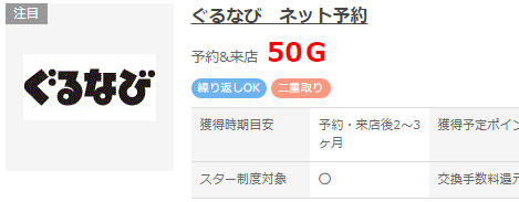 Gポイント経由でぐるなび予約で50G(50円)ゲット