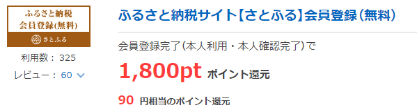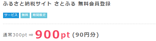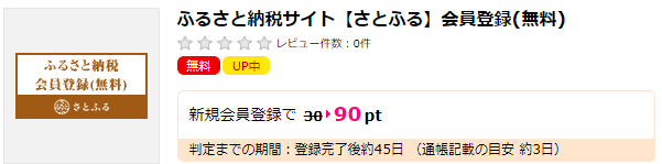 ハピタス経由でさとふるの無料会員登録をすると90円分もらえます。