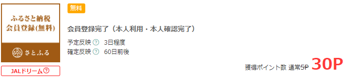 モッピー経由でさとふるの無料会員登録すると30円分もらえます。