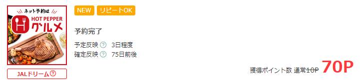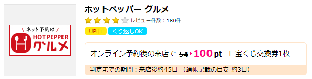 モッピー経由でホットペッパーグルメを予約すると70円分もらえます。
