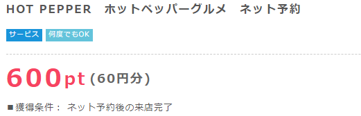 ポイントインカム経由でホットペッパーグルメを予約すると60円分もらえます。