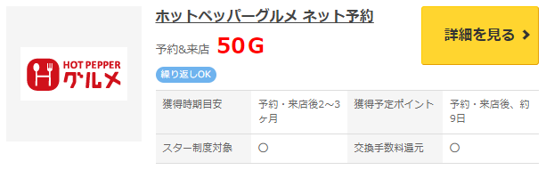 Gポイント経由でホットペッパーグルメを予約すると50円分もらえます。
