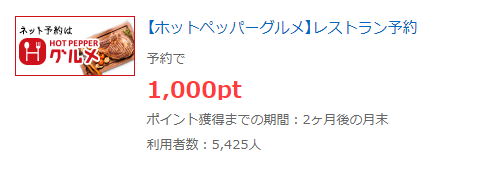 ハピタス経由でホットペッパーグルメ予約で100pt(100円)ゲット