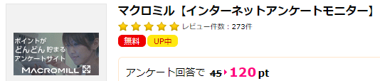 ポイントインカム経由でマクロミルに無料登録で120円分もらえます。