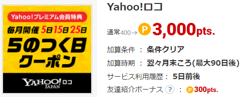 ハピタス経由でYahoo!ロコ予約で300pt(300円)ゲット