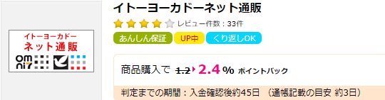 ハピタス経由でイトーヨーカドーネットスーパー購入すると2.4%分もらえます。