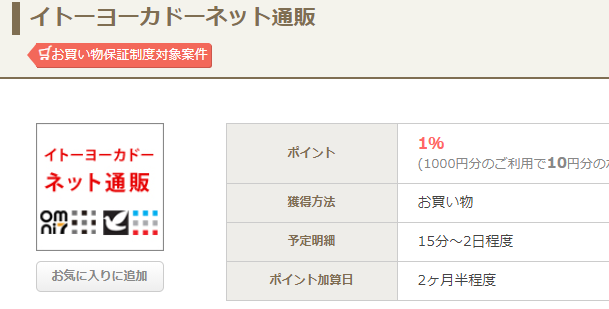 げん玉経由でイトーヨーカドーネットスーパー購入すると1%分もらえます。